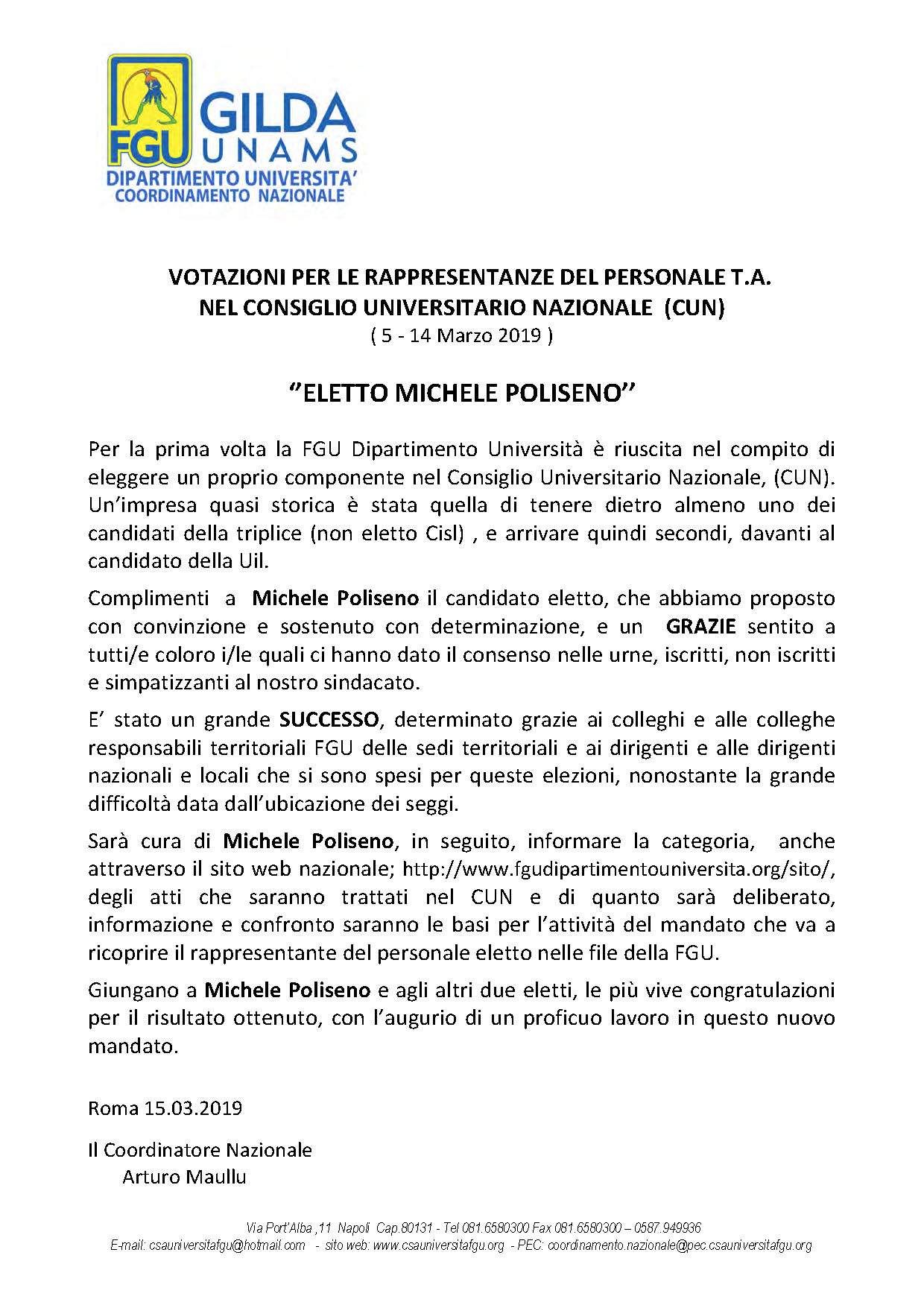 COMUNICATO NAZIONALE FGU GILDA - DIPARTIMENTO UNIVERSITÀ
